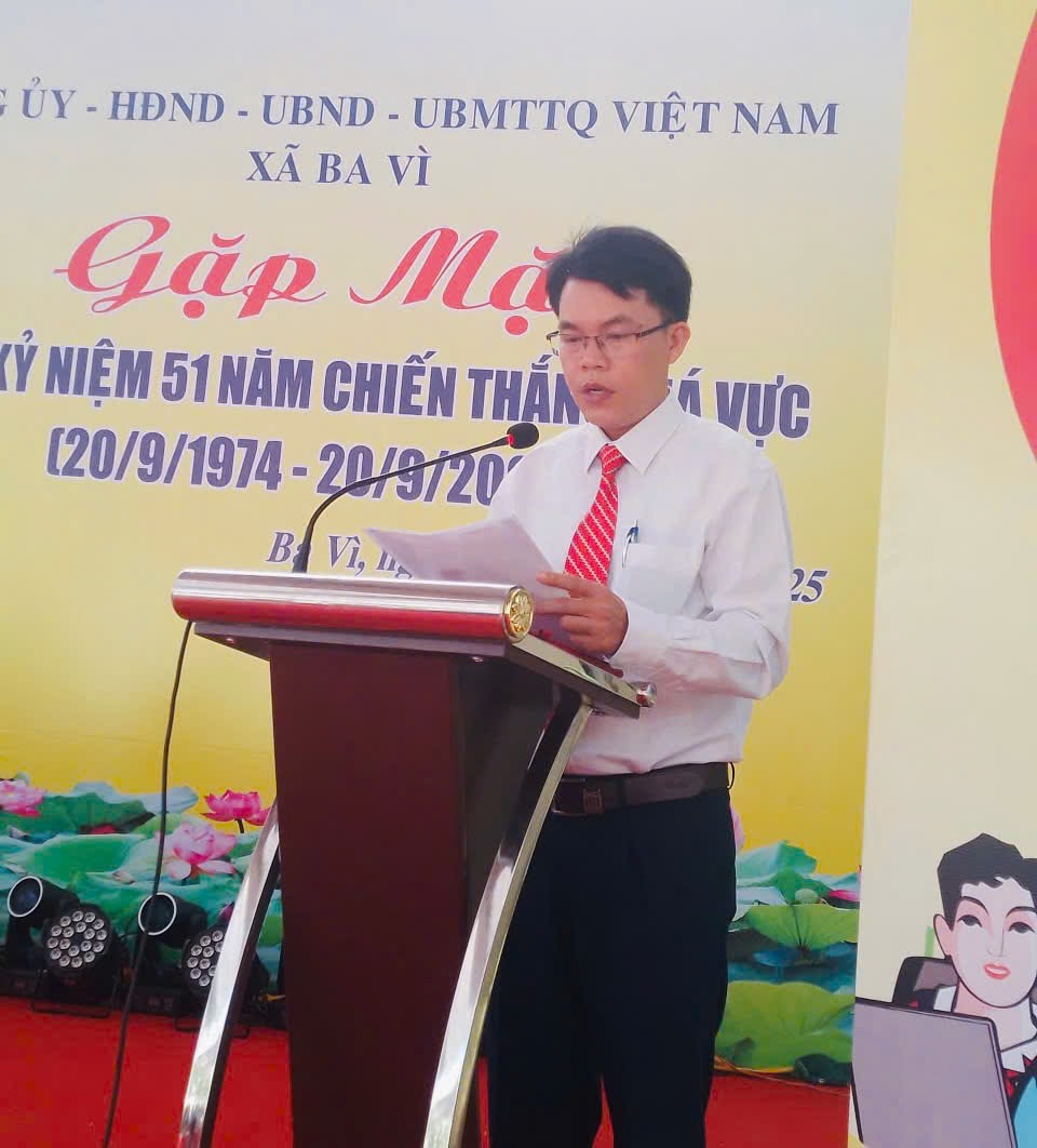 Đồng chí Trần Duy Diễn - Phó Chủ tịch UBND xã Ba Vì đọc diễn văn kỷ niệm 51 năm Chiến thắng Giá Vực