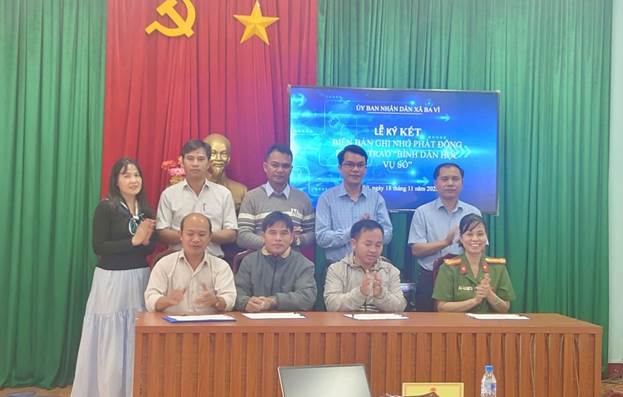 Ngay sau lễ ký kết, lãnh đạo xã Ba Vì đã thực hiện nghi thức phát động phong trào “Bình dân học vụ số năm 2025” trong không khí trang trọng và sôi nổi. Các đại biểu, thành viên tổ công nghệ số cộng đồng đã được hướng dẫn truy cập và trải nghiệm nền tảng “Bình dân học vụ số”, tìm hiểu các chuyên mục học tập kỹ năng số cơ bản, các tiện ích số phục vụ đời sống, cũng như các nội dung liên quan đến Đề án 06 và dịch vụ công trực tuyến. Việc giới thiệu và hướng dẫn trực tiếp giúp người dân dễ dàng tiếp cận, sử dụng nền tảng, từng bước hình thành thói quen học tập và ứng dụng công nghệ số trong sinh hoạt hằng ngày.