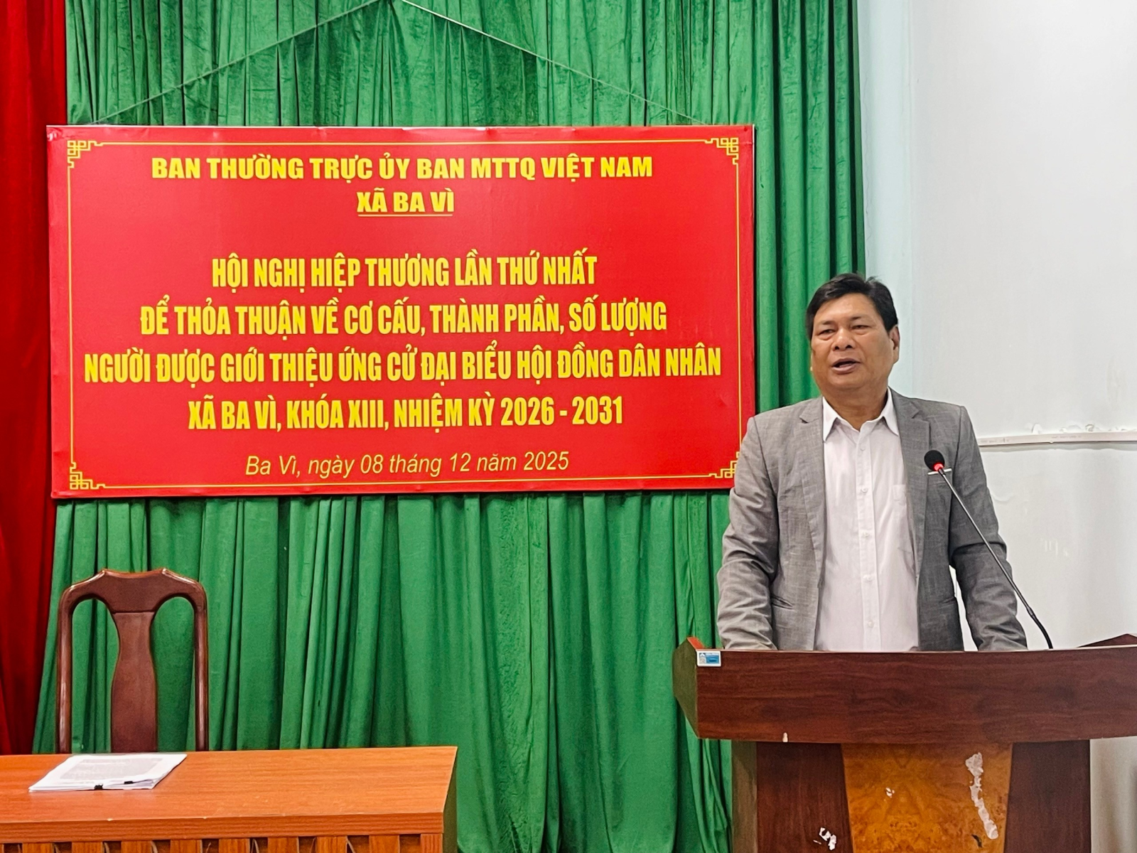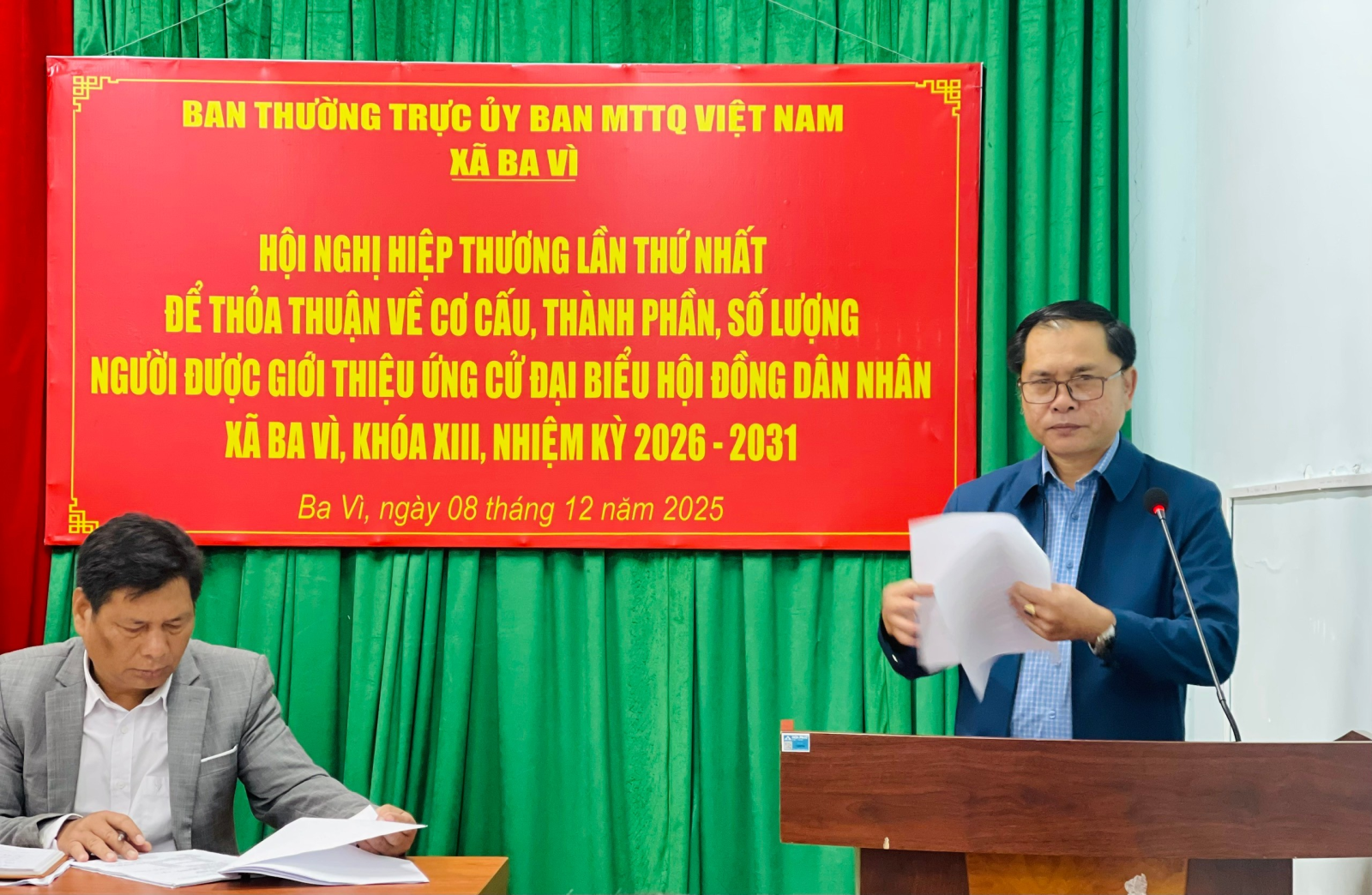 Sáng ngày 08/12/2025, tại Hội trường UBND xã Ba Vì, Ban Thường trực Ủy ban MTTQ Việt Nam xã đã tổ chức Hội nghị hiệp thương lần thứ nhất nhằm thỏa thuận cơ cấu, thành phần và số lượng người được giới thiệu ứng cử đại biểu Hội đồng nhân dân xã khóa XIII, nhiệm kỳ 2026–2031.