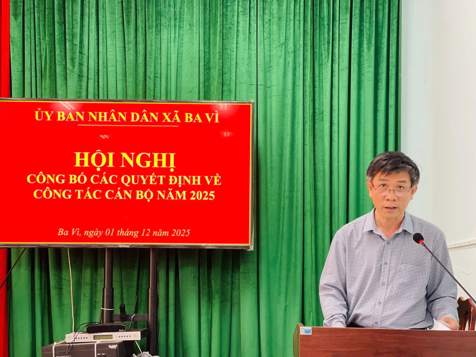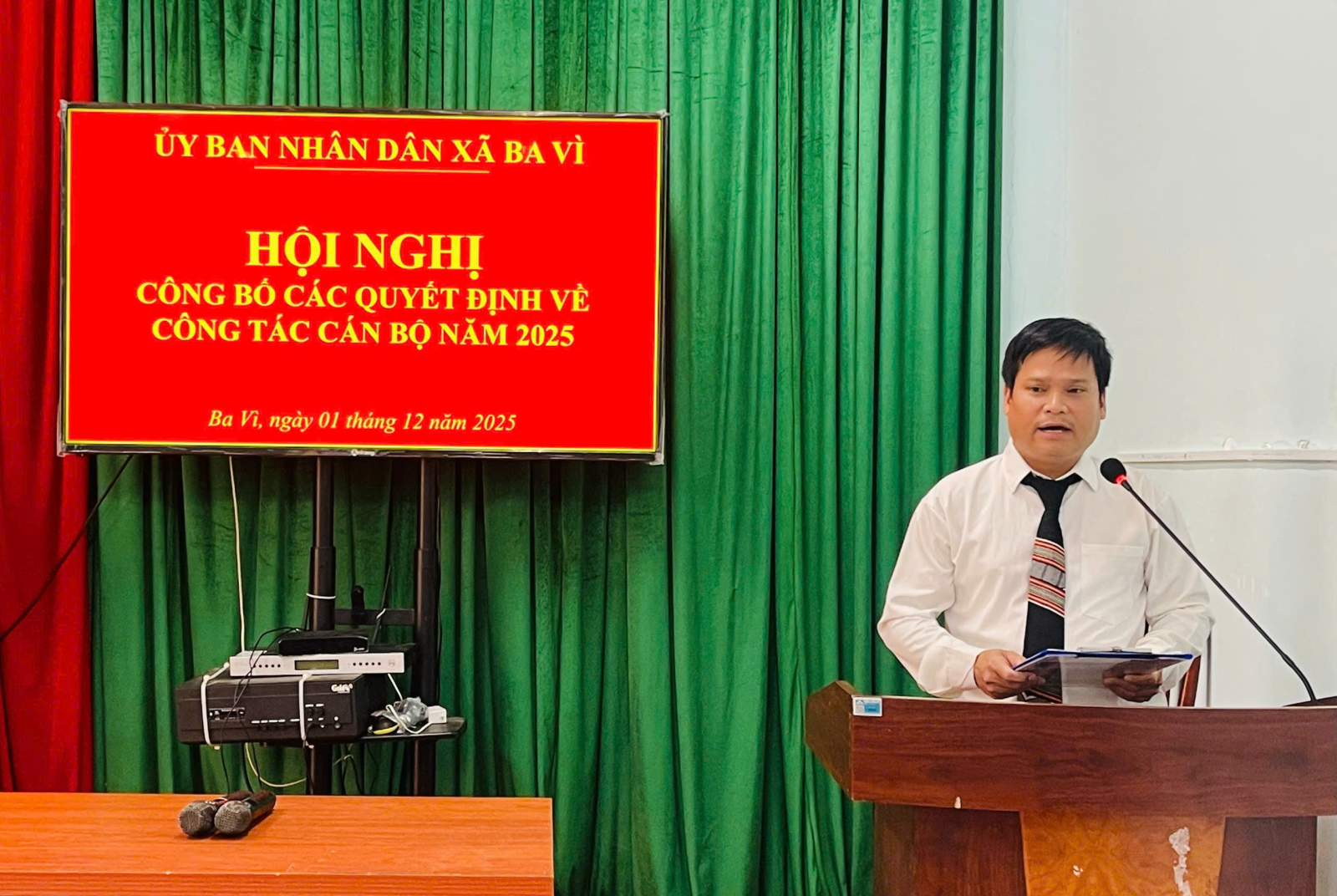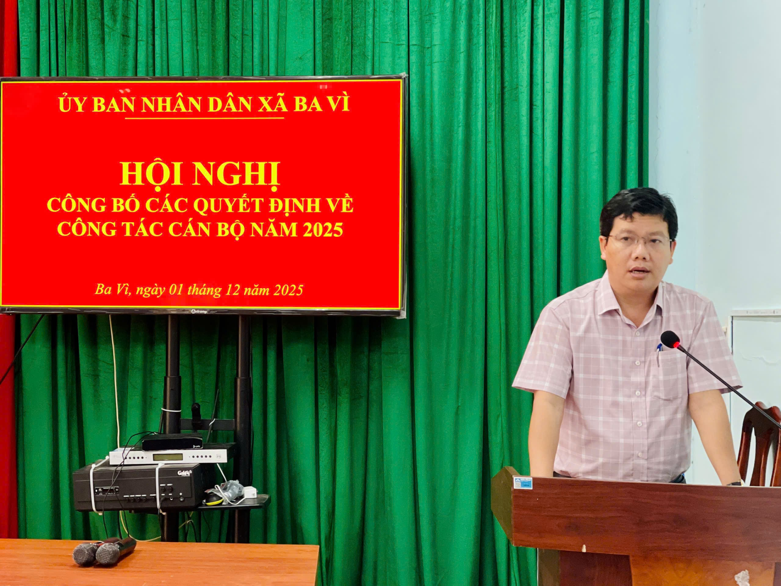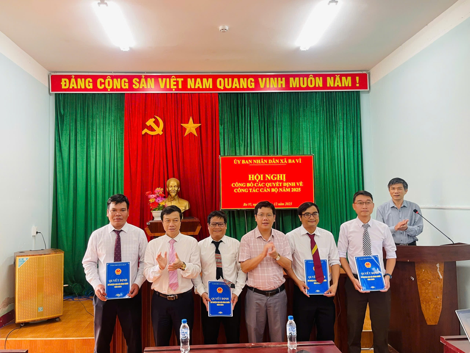 Tại Hội nghị, UBND xã đã thông qua Kết luận số 36-KL/ĐU ngày 01/12/2025 của Ban Thường vụ Đảng ủy xã Ba Vì về việc thống nhất nhân sự bổ nhiệm các chức vụ lãnh đạo, quản lý tại các đơn vị trực thuộc. Thống nhất nhân sự bổ nhiệm Theo Kết luận, Ban Thường vụ Đảng ủy thống nhất bổ nhiệm: Đồng chí Phạm Văn Phú, công chức Văn phòng HĐND & UBND xã, giữ chức vụ Phó Trưởng phòng Văn hóa – Xã hội xã Ba Vì; Đồng chí Lê Ngọc Toàn, viên chức Trung tâm Cung ứng dịch vụ công xã, giữ chức vụ Phó Giám đốc Trung tâm Cung ứng dịch vụ công xã Ba Vì; Đồng chí Đặng Công Tỉnh, công chức Văn phòng HĐND & UBND xã, giữ chức vụ Chánh Văn phòng HĐND và UBND xã Ba Vì; Đồng chí Phạm Văn Nhành, viên chức Trung tâm Phục vụ Hành chính công xã, giữ chức vụ Phó Giám đốc Trung tâm Phục vụ Hành chính công xã Ba Vì.