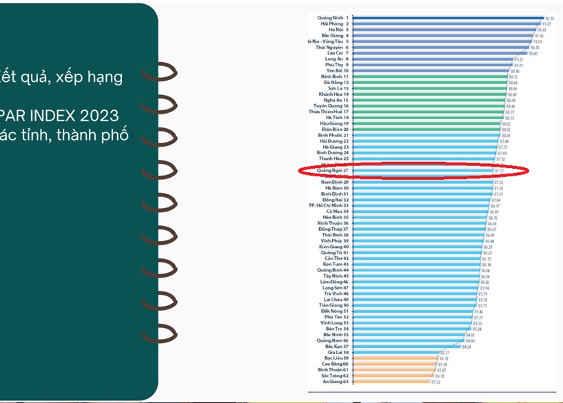 Quảng Ngãi năm thứ 2 liên tiếp giữ vị trí thứ 27 về chỉ số cải cách hành chính (PAR INDEX)